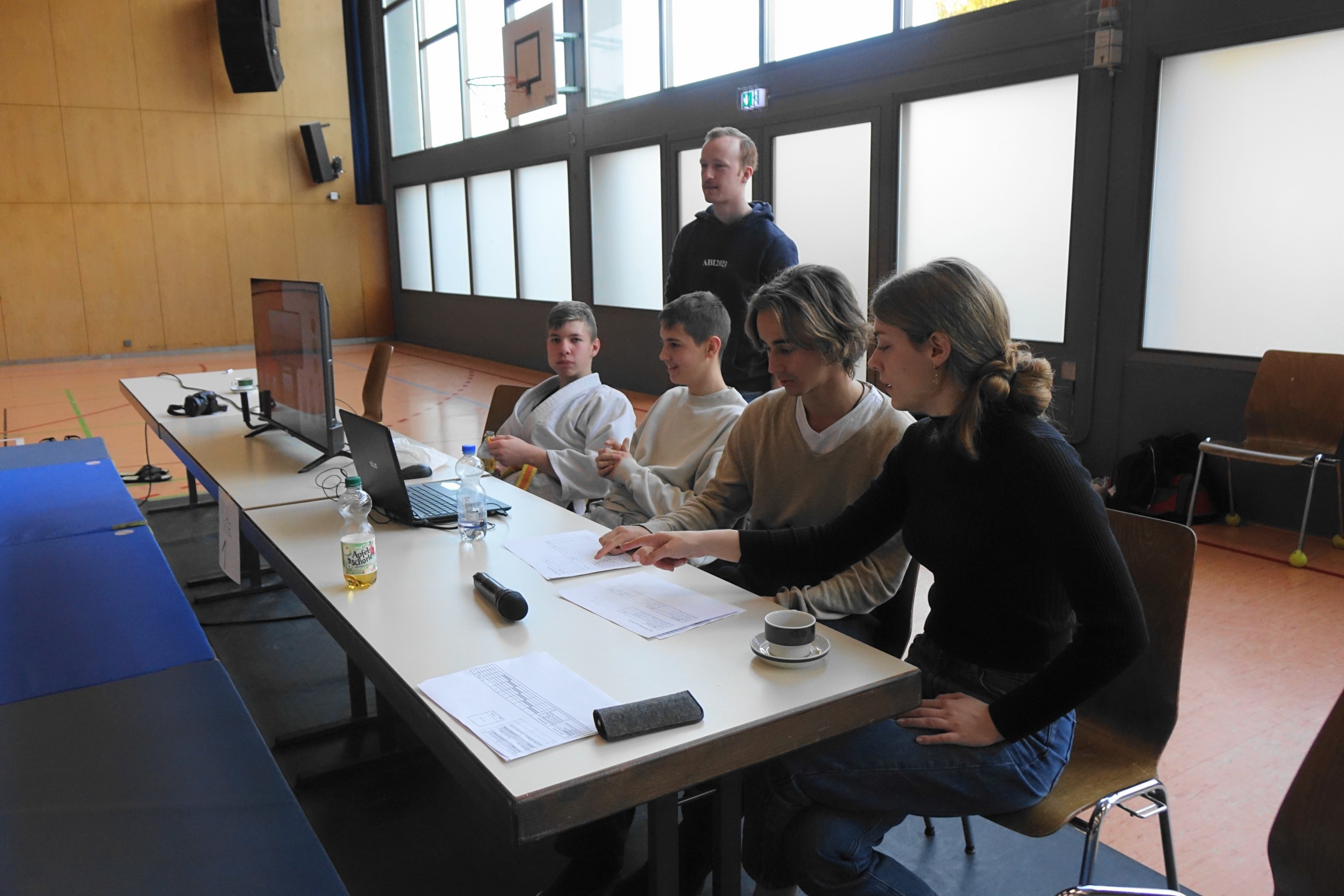 Von Links: Unsere Trainer Isaiah und Clemens, 1. Vorstand Dirk und Prüfer Werner von unserem benachbarten Verein JC Tiengen