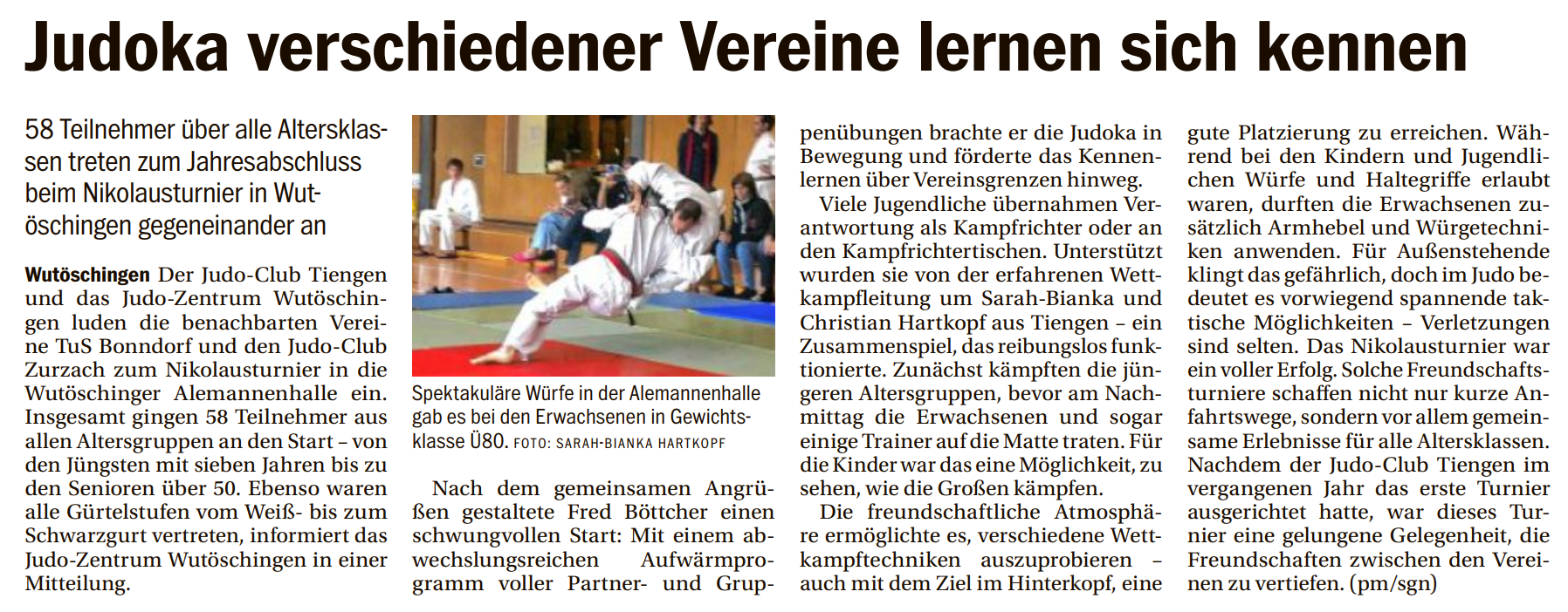 Sa., 15.11.2025, Nikolausturnier in Wutöschingen mit benachbarten Vereinen Ausschreibung und zu den Artikeln aus dem Südkurier und auf der Seite des Badischen Judo Verbandes.